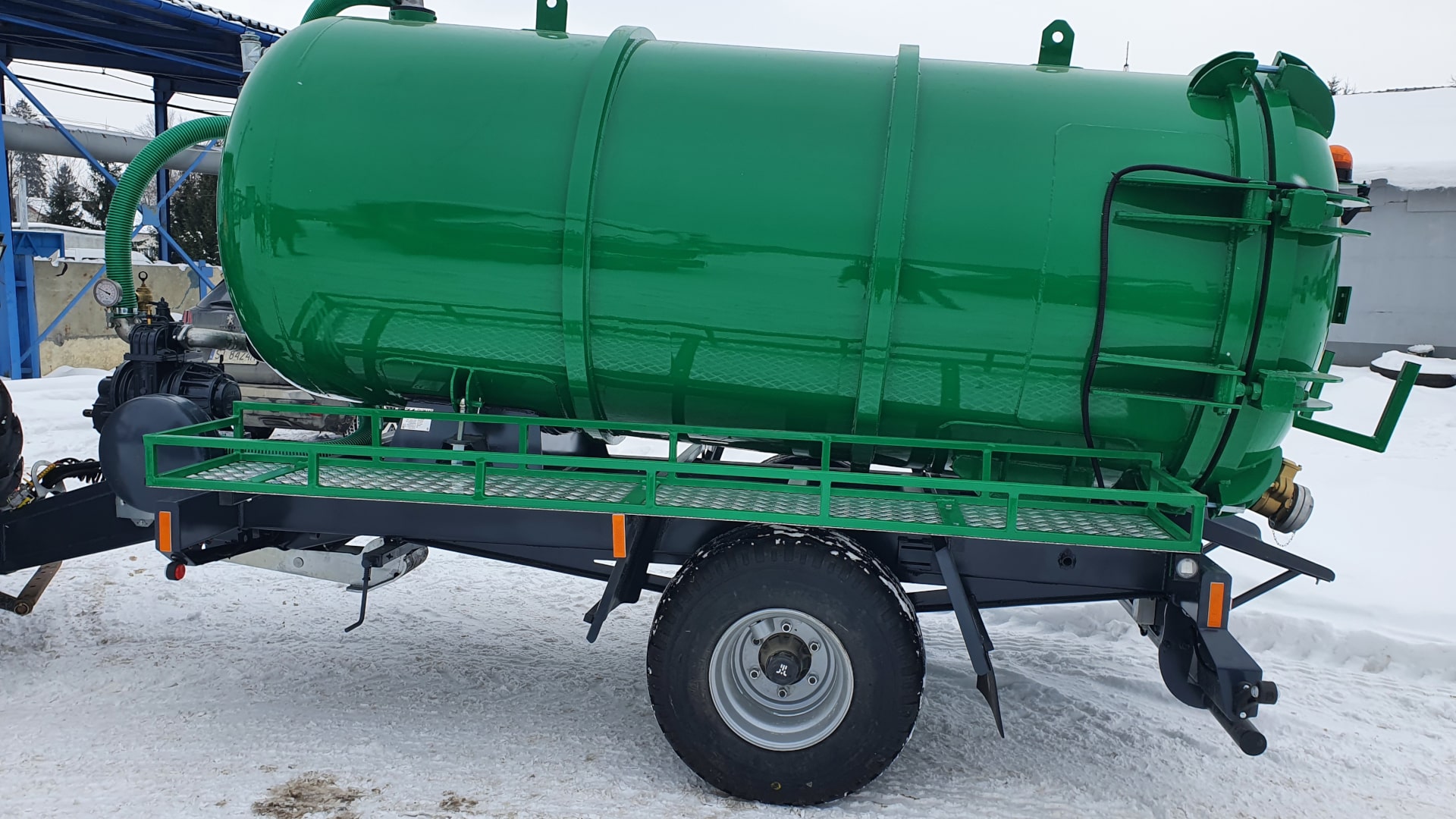 - Beczka asenizacyjna – odpowiedzialna za efektywne przechowywaniu płynnych odpadów, takich jak ścieki, szlamy i osady. Aby zapewnić długotrwałą i niezawodną eksploatację, musi być wykonana z materiałów odpornych na korozję i działanie chemikaliów, takich jak stal nierdzewna, aluminium czy trwałe tworzywa sztuczne. Współczesne wozy asenizacyjne wyposażone są w zaawansowane funkcje, w tym system odpowietrzania, który zapobiega nadmiernemu ciśnieniu, oraz wskaźnik poziomu napełnienia, który umożliwia precyzyjne monitorowanie ilości zgromadzonych nieczystości.